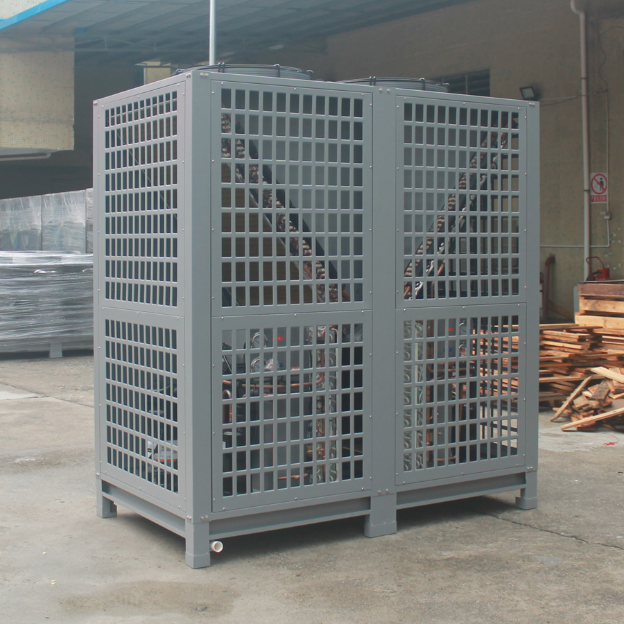 冷媒在压缩机的作用下在系统内循环流动。它在压缩机内完成气态的升压升温过程(温度高达115℃),它进入内机释放出高温热量加热烘干房内空气,同时自己被冷却并转化为流液态,当它运行到外机后,液态迅速吸热蒸发再次转化为气态,同时温度下降至零下20℃-30℃,这时吸热器周边的空气就会源源不断地将热量传递给冷媒。冷媒不断地循环就实现将空气中的热量搬运到烘干房内加热房内空气温度。